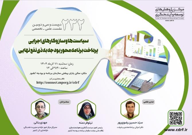 دویست و سی و دومین نشست علمی تخصصی با موضوع سیاستها و ساز و کارهای اجرایی پرداخت ... در مورخ 1404/9/11