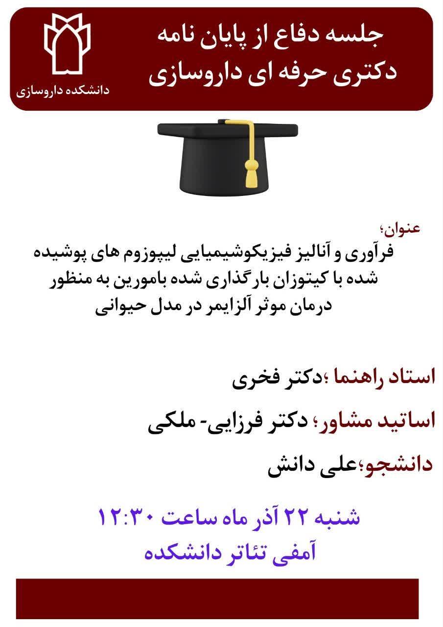 اخبار اطلاعیه برگزاری جلسه دفاع از پایان نامه دکتری حرفه ای داروسازی توسط آقای علی دانش ۱۹ آذر ۱۴۰۴ ۱۴:۱۵ نظرات بینندگان میانگین امتیاز کاربران: 0.0 (0 رای) 12345 امتیاز 12345 برای امتیاز باید عدد وارد کنید نام را وارد کنید ایمیل صحیح نیست ایمیل نمایش داده شود. تعداد کاراکتر باقیمانده: 500 نظر خود را وارد کنید بازخوانی بازخوانی پس از انتشار این نظر، به من اطلاع داده شود. ارسال